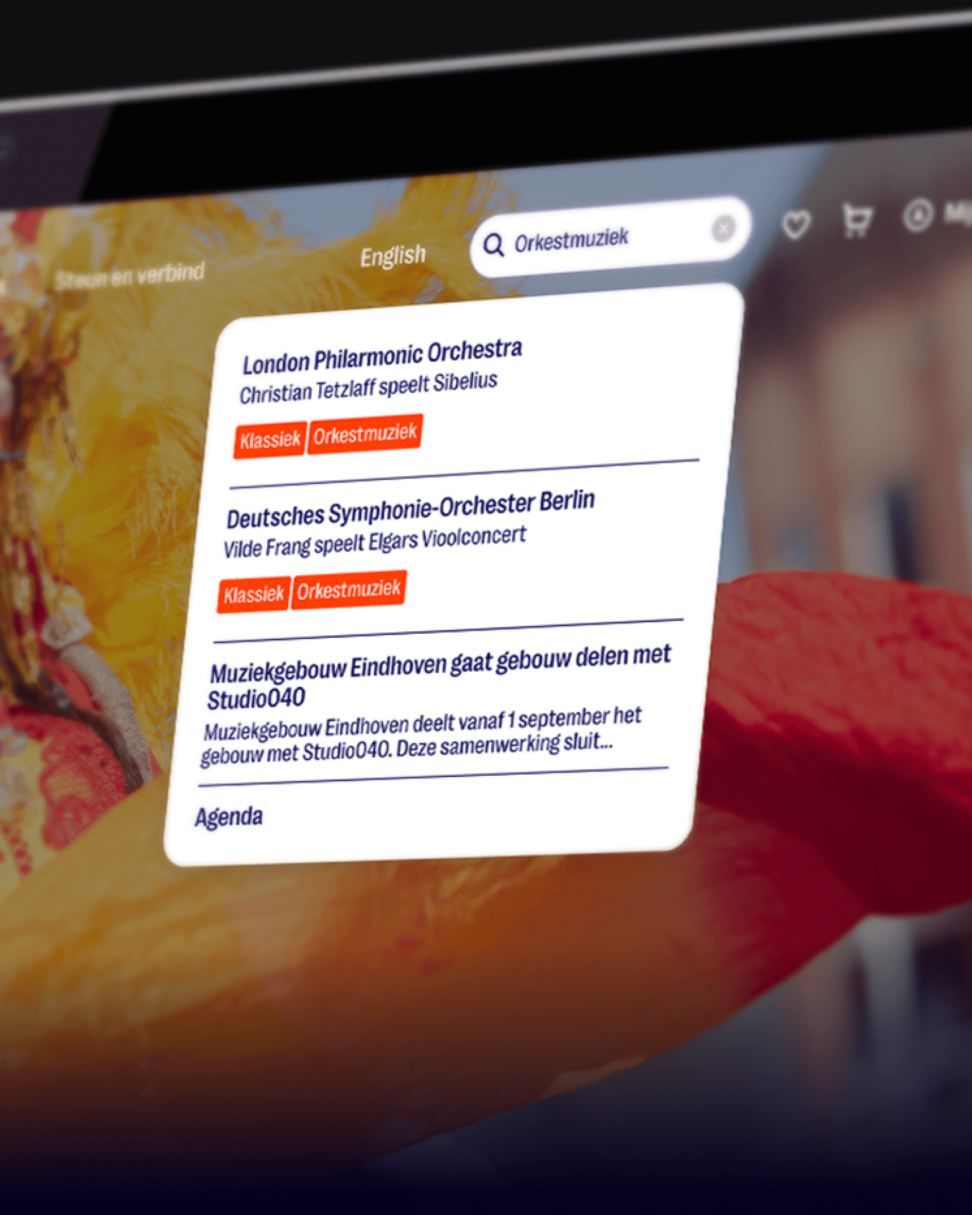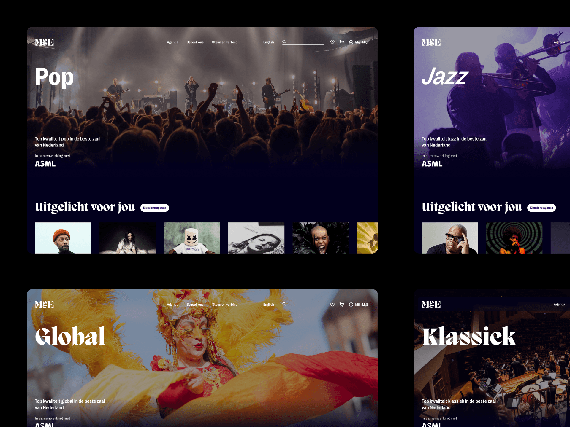 Beyond aesthetics, the challenge was strategic: how could we present Muziekgebouw Eindhoven as a vital cultural hub, one that connects with a diverse, curious, and evolving audience? The brand needed to feel both contemporary and rooted in its mission, capable of resonating with loyal concert-goers as much as with new visitors. One of the main features that we introduced to the homepage is a clear statement to the versatility of the programme.